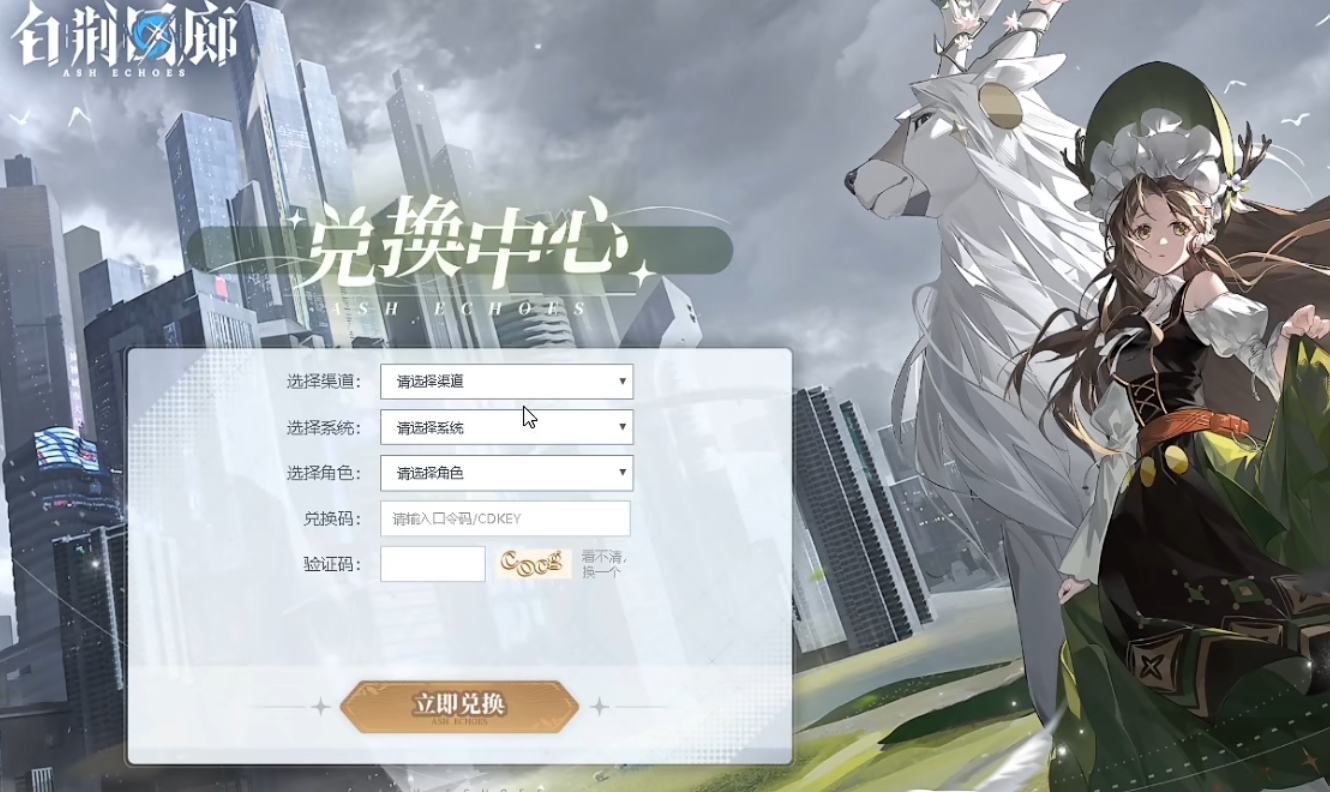 来到这里后,手动选择渠道与系统,选择完毕后就会自动检测出对应的角色,看看角色的昵称是否正确,正确的话就可以开始输入兑换码和验证码来兑换奖励了,大家可以用“监督上任”这个兑换码去进行尝试,将其输在兑换码后面的白框中,然后照着验证码后面图片显示的字母输入,并点击“立即兑换”即可。