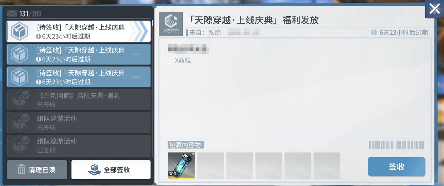 兑换后不会直接发到你的账号上,需要去主页左上角打开邮箱,然后从中选择代签收的快递进行签收才能将X晶粒收归囊中,每颗晶粒都可以切实作用到你角色的身上,并使它的强度获得提升,所以大家一定不要错过这次兑换它们的机会。
