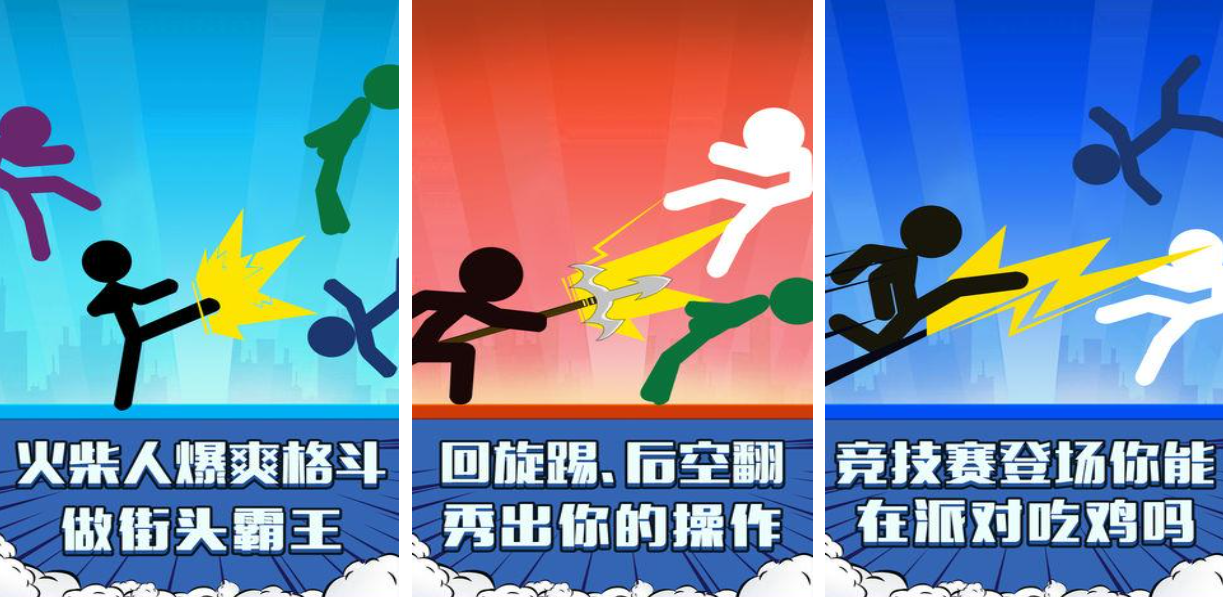 本作是款可以释放心中压力的火柴人自由格斗游戏,暴爽的格斗场面和极限的操作手感令人沉浸其中,一人面对众多敌人的战斗画面观赏性绝佳,惊心动魄的吃鸡过程和优异的打击特效让玩家大呼过瘾,不同的武器还会给予玩家不同的战斗风格,这款无比爽快的火柴人主题吃鸡游戏一定会让你满意。