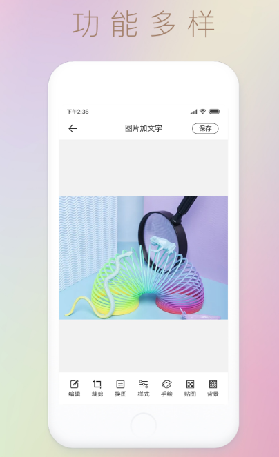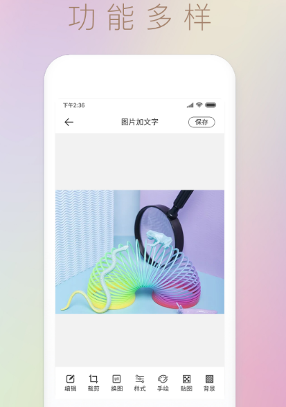 软件能给图片加文字也能制作封面,主要就是看一看自身的需求,不管是任何类型的封面都是需要有图片有文字的,通过该软件的使用,能让各种图片变得有趣生动。包含各种方便的功能,比如长图拼接,图片编辑、文字动图等功能,有文字做图片以及卡纸功能,可迅速生成渐变色的卡纸图片,拥有众多的颜色,还有图片制作记录功能以及格式转换功能。