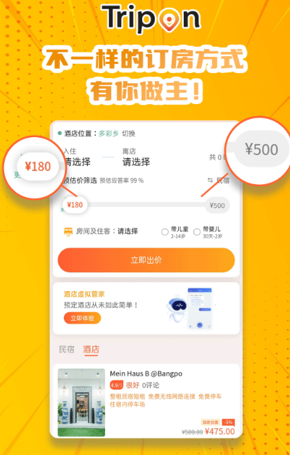 想要订到便宜的酒店,该软件就是互联网住宿行业当中的领先品牌,希望能给每一个用户打造一个简单便捷的预订酒店平台,尤其是年轻人想要便捷的预定酒店,或者是想要预订短租房子,该软件都能提供一个良好的服务及查询交易产品搜索为一体。就像是滴滴打车模式一样,用户出价,房东买单,当然可订到便宜的酒店或者是民宿,也可租到适合的房子。
