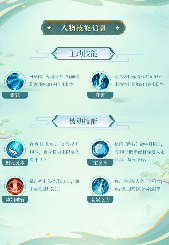 首先赵灵儿她具有强大的输出能力,无论是在战斗的前期,中期还是后期都拥有着高强的输出,属于天花板级别的角色,并且他的攻击力包含了很多段的输出以及增伤的效果。可以有效的帮助团队整体的攻击力和伤害得到一个大额的提升,另外他还拥有一个极佳的辅助被动技能。这个技能可以让整个队伍的伤害有所加成,并且还可以让敌人受到的每次攻击叠加灵儿的攻击伤害。