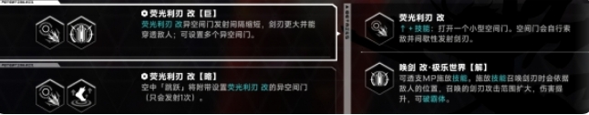 首先是荧光利刃,这个流派比较适合11这个角色来使用,在游戏中大家使用的时候其实就可以利用荧光利刃改、解以及三段跳跃这几个潜能来走这个流派,这个流派当中的重点就是上面的荧光利刃啦,在上面使用这个技能其实就可以打开一个自动发射的空间门,利用这个效果带来的伤害其实是会有伤害倍率提升效果的。