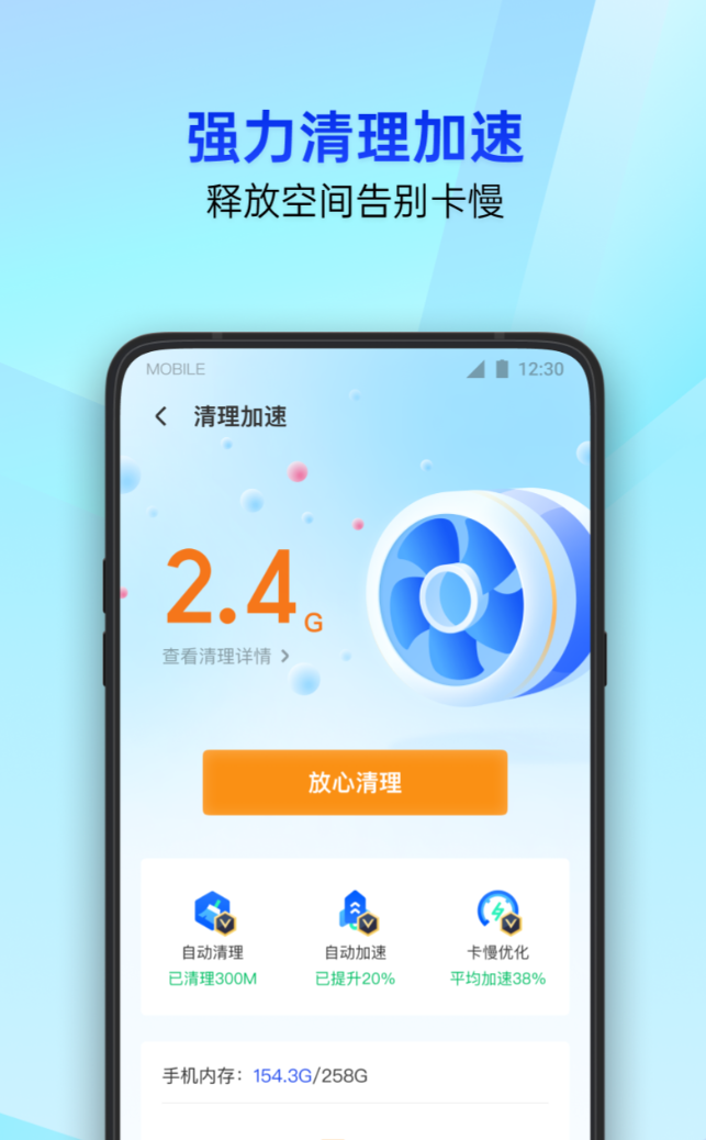 安全方面的事情他能管,储存方面的事他也能管!能自动识别手机中长期不用的软件,帮助大家清理空间,同时也能精准打击潜入手机内部的病毒,让大家安心使用手机。