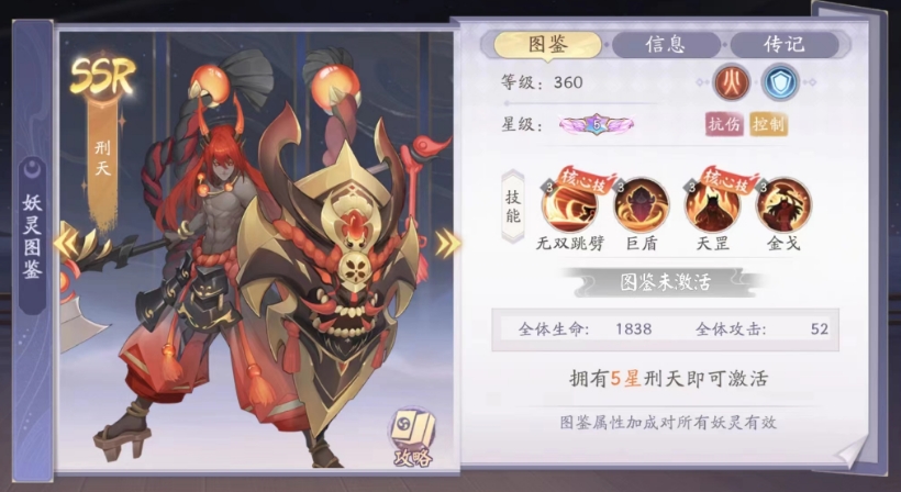 刑天:这是主打承伤和控制的一个强力前排,他的防御属性出众,入手之后能够帮助你很好的吸收敌人火力,进而间接保护后排的输出位,同时其两个核心技也有着显著的作用,其中“无双跳劈”可以对扇形区域敌人造成高达668%攻击加成的伤害,并且还有一定几率能够眩晕敌人,触发眩晕后敌人将直接失去行动和回怒的能力。