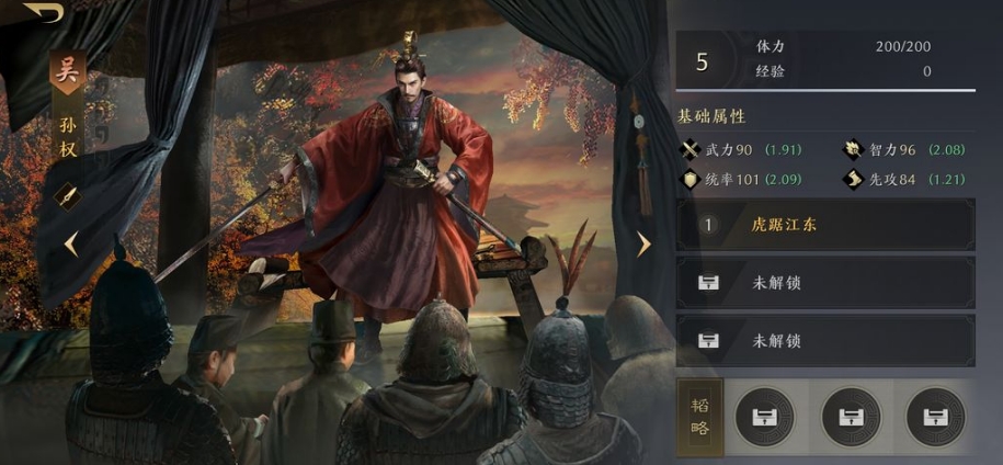 第四个就为大家推荐孙权,就像上面说的孙权本身就是一个输出型的武将,带队效果很是不错,就算是单独上阵也不示弱,但是目前最好用的还是放在队伍中,因为孙权其实是一个比较百搭的武将,不管和什么武将放在一起都是可以带来最强的输出效果,所以放在队伍中使用也是比较好的。