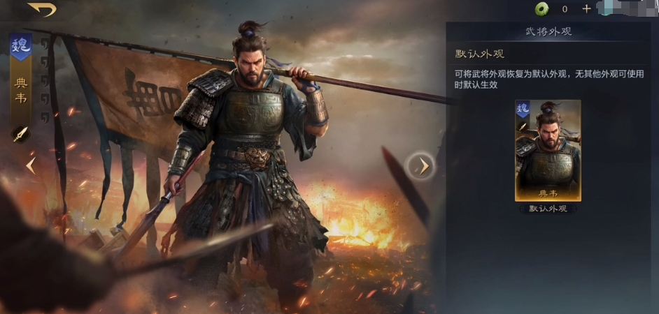 然后就是一个顶级的防御类角色点位,这个角色要是用的话绝对是放前排没跑的,毕竟能够在被打之后一直进行反击的也只有典韦了,而且目前一般的防御类角色都是达不到这么高频率的反击效果,虽然只有普攻反击,但是多次反击累积的输出也是很够看的,只要大家后期搭配一些输出提升比较高的战法就可以了。