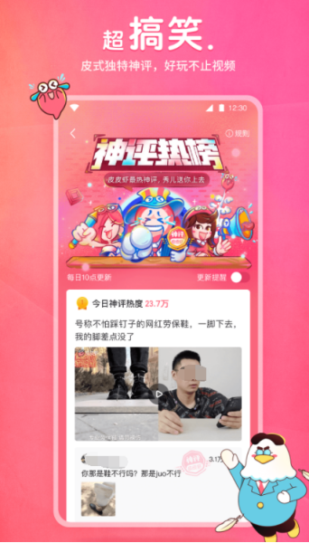 该软件能让你看到各种不同的视频内容,也可把自己喜欢的视频点赞,评论互动,可以看一些搞笑博主发的视频,如果想要学习做饭,可关注美食博主,也有健身、美妆、旅游、科技等等相关的博主,与你一起互动。