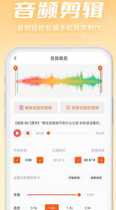 被称为音频剪辑大师的软件,它的主要功能就是对音频进行处理,如果想要将视频一帧一帧处理,也可利用里边的工具来完成,裁剪音乐时能精确至毫秒级。