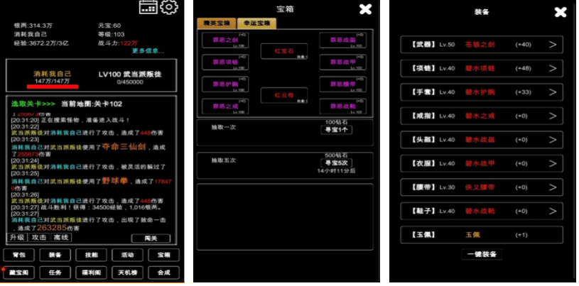 这是款具有国风武侠特色的文字mud游戏,半挂机的文字放置玩法让本作更具魅力,极高的爆率和文字叙述的冒险过程也让玩家沉浸其中,丰富的游戏奖励和点触式的操作也让游戏显得其乐无穷,日常副本与爬塔系统的加入让游戏的耐玩性大大提升,喜欢玩文字武侠挂机游戏的朋友试试本作吧。