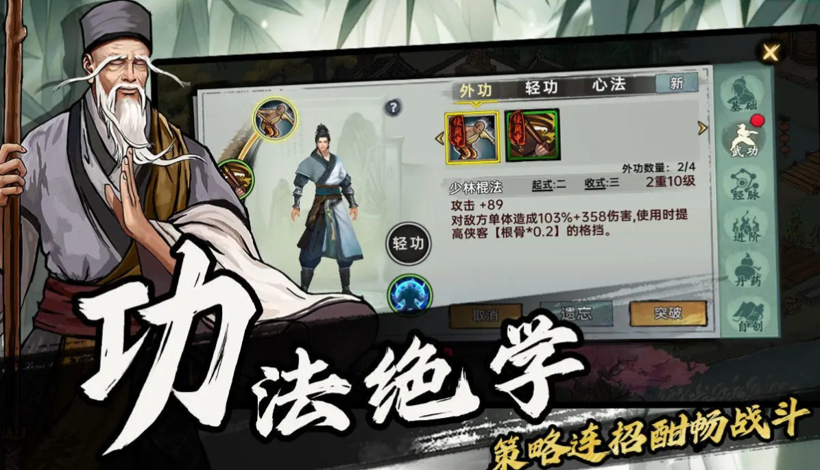 武侠历险记是款充满挑战性的水墨背景单机RPG武侠游戏,玩家将化身武林侠客使用各种武功将敌人送入长眠,小说般紧凑的剧情配合独一无二的人设让游戏更具魅力,酣畅淋漓的战斗体验和炸裂的技能效果也为游戏润色不少,丝滑流畅的动作效果将武功的一招一式都呈现的淋漓尽致,列位武侠小说迷不想试试武侠历险记这款神作吗!