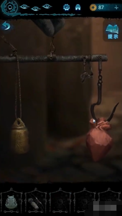 把心型雕塑扔到水里,切换到女主角视角再去拿雕塑,然后雕塑可以在秤杆上换取物欲愿,然后触发剧情并左下角拿到绳子、木雕和纸条。