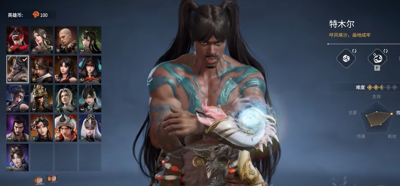 第二个角色推荐大家选择团队类的角色【特木尔】,在游戏中,大家都叫特木尔为沙男,其实也跟季沧海一样,由于自身的攻击技能都携带沙尘暴等元素,这个职业对于团队收益是非常 的高的,大招技能开启后,可以对这指定的方向跳跃,落地后,在附近的区域生成一篇沙尘暴,而特木尔自身是可以在沙尘暴当中进行移动的的,可以在沙尘暴当中规避一些远程伤害;