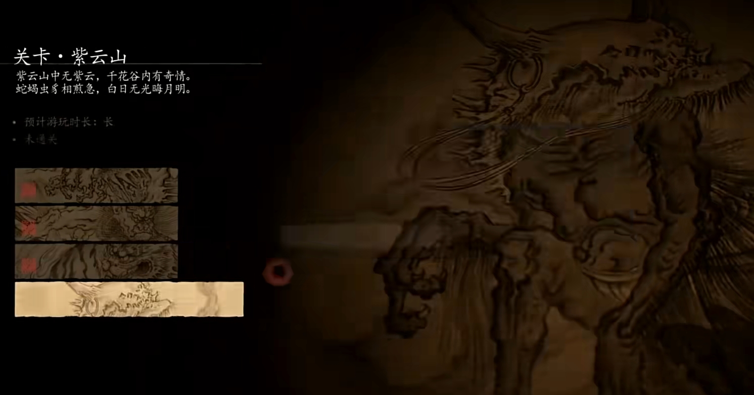 第四关是目前唯一一个以地名作为标题的关卡,名字是“紫云山”,它在打boss之前,还有着多个小怪,而且前置地形也非常蜿蜒曲折,在这里你可以见到高山绿树,还可以见到大大小小的各种土地庙,同时还能发现想要为夫报仇,但却有心无力的蛇妖,以及同样被往事所困扰的小boss毒敌大王,击败它以后,后面还能见到大boss晦月魔君。