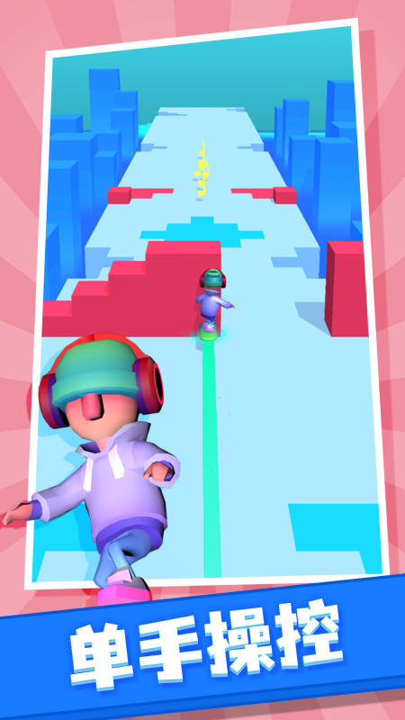 这是一款音乐和跑酷结合在一起的游戏,玩家在跑酷的过程中可以伴随着音乐,根据音乐的激烈程度,跑酷的速度也是不一样的。而且游戏的操作也非常简单,大家双手进行操作就能够快速的让角色跑动起来。游戏的运行速度是非常快的,因为毕竟是一款跑酷类型的游戏,想要获得高分就必须要跑出一个好的成绩。