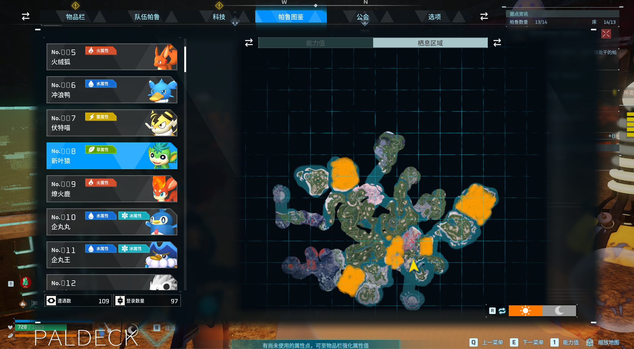 新叶猿的伙伴技能是猴急步枪,可以在一定时间内以突击步枪猛力扫射附近的敌人,造成大量伤害。新叶猿的掉落物品是蘑菇,可以用来制作食物或药品。新叶猿的进食量是2,需要定期给它喂食。要想捕捉新叶猿,首先需要找到它的出没地点。新叶猿的分布区域如图所示,是一个位于地图西北角的森林区域,有一个传送点可以快速到达。新叶猿的出现时间是白天和夜晚,没有特定的季节限制。