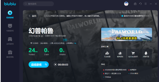 如果有条件的还可以直接带上暗巫猫,就能够让自己有机会获得更多的皮革,不过如果在刷狼时经常性出现网络卡顿,不是很顺畅的现象。建议直接到平台下载加速器,biubiu如今会针对幻兽帕鲁进行加速,会有许多的优惠政策,比如新用户在注册之后就可以得到24小时加速时长,但无需担心,如果可以搭配兑换码【biubiu001】就能够额外的得到三天免费加速时长总共是96个小时,无论是新用户还是老用户全部都可以获得,玩家千万不要忽视。