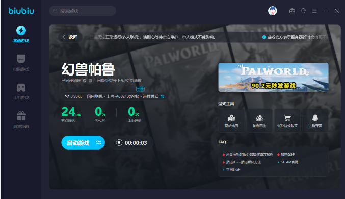 biubiu如今针对幻兽帕鲁展开加速,玩家如果是新用户,在注册之后就可以得到24小时的免费加速时长。如果可以搭配兑换码使用,还可以额外的得到三天免费加速时长。兑换码【biubiu001】使用方法很简单,无论是新用户还是老用户都可以获得,在搭配使用之后总共是96个免费加速时长。