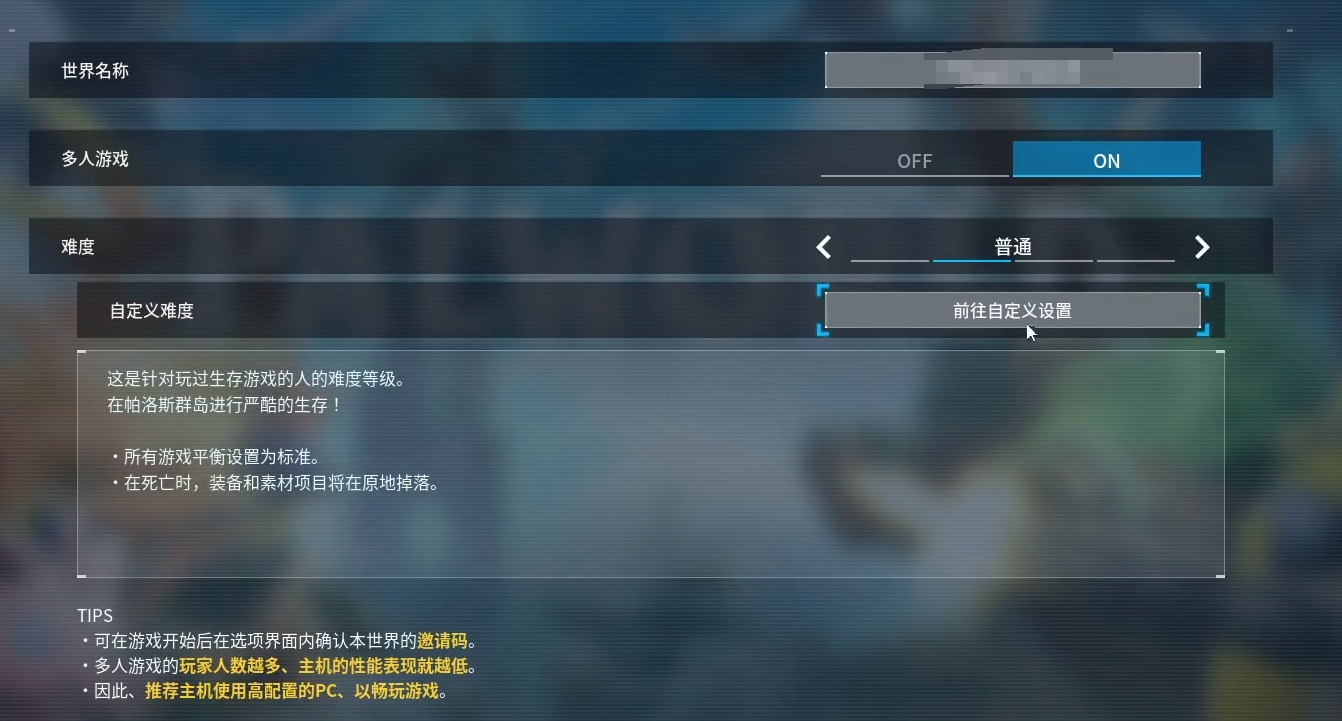自己和小伙伴联机的话使用邀请码的方式联机是最好的,操作步骤也很简单,第一步创建新世界,然后在创建选项中把“多人游戏”那一项调到“on”的位置。