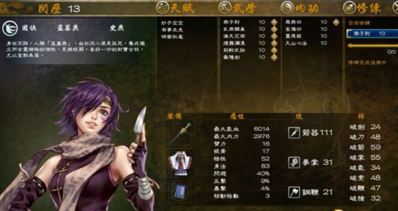 首先是人物的选择,我们需要把欧阳笑的血量降到低水平并且不能让他很快死亡。这样的话选择岳胖子出站就是不错的选择,他可以和欧阳笑一直打持久战,让我们有更多的机会能进行偷窃。还有就是可以选择史燕,它的天赋技能为她带来很强的闪避能力,也非常适合偷窃玩法。