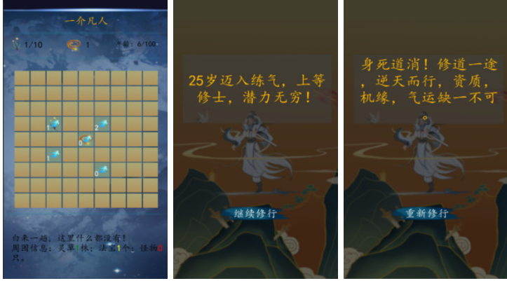 方块修仙是款特别另类的国产修真类型游戏,本作创新性地将扫雷和仙侠元素进行了融合,玩家需要通过点触屏幕寻找隐藏在棋盘下的修真道具,古典怀旧的BGM搭配仙侠元素的背景令人心旷神怡,简单的点触式操作以及休闲佛系的游戏氛围也为游戏增色不少,相信这款十分另类的扫雷修真手游会让你耳目一新。