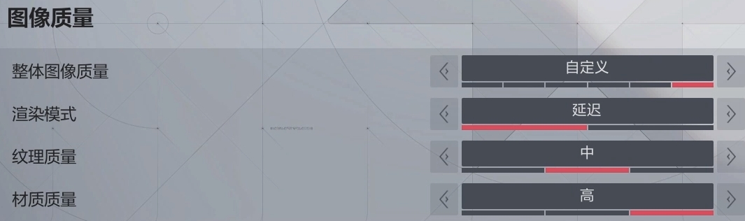第二个类目则是图像质量,需要设置四项才能实现最高画质,首先把整体图像质量拉到最右边,然后渲染模式则调到右边成为实时,最后纹理质量和材质质量调到最右边变成高。