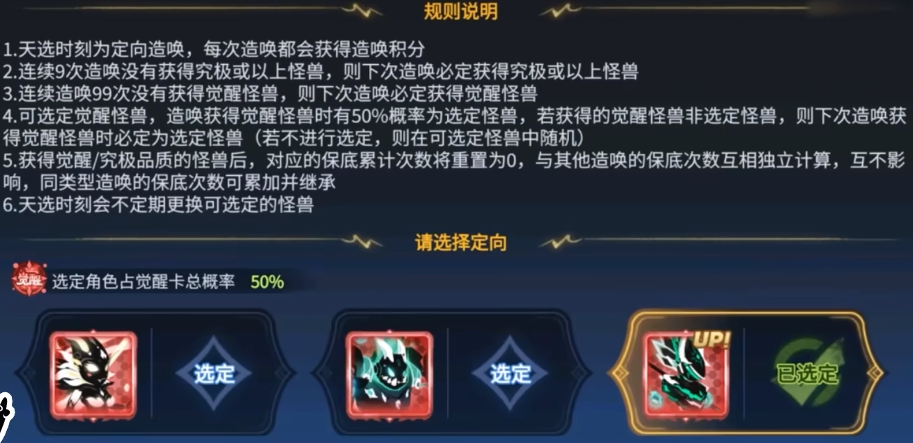 第二个更新则是pvp方面的玩法拓展,春节期间将会推出“三阵入局”的pvp活动,这个活动可以叫上自己的小伙伴一起进行三人组队匹配,期间会碰到各种敌人,而你需要提前准备三支怪兽队伍才能与它们进行完整的对抗。