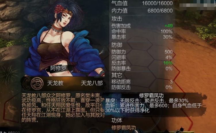 阿修罗:她是一个输出能力十分出众的角色,本身修行了修罗霸凤功,可以在被攻击的时候连续反击,而且随着攻击次数的变多还能逐步提升自己的伤害,同时残血的时候还能净化身上的debuff!