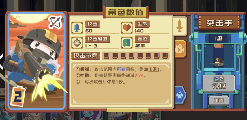 而突击手的话则能利用高达60的攻击与技能所提供的的击退效果来间接保全弓箭手和自己的输出环境,此外,这套阵容还有一个大锤做前排,可以利用眩晕来进一步牵制对手。
