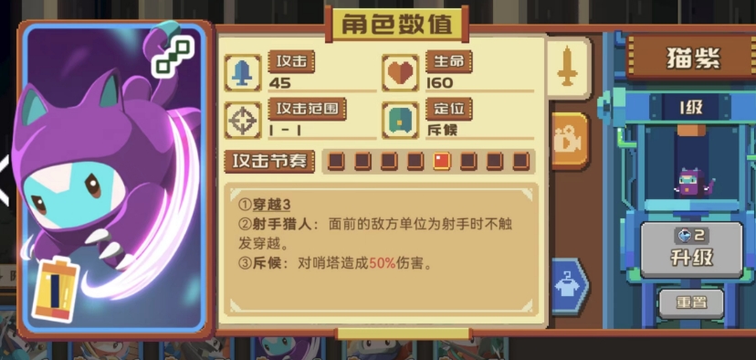 第二套推荐的是近战莽夫阵容,利用系统送的剑士搭配和枪士两个高攻击力的豆丁,可以一波就打出爆炸的伤害,而且这套阵容的猫紫与枪士都十分特殊,前者开局可以位移三格并定点停在敌方射手面前,后者则有着更大的攻击范围,能一次攻击多名敌人以此快速收割。