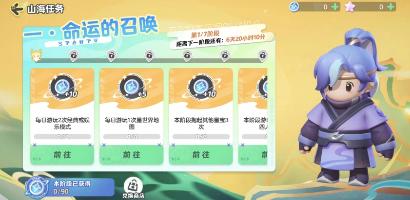 第二个就是山海任务,这个任务主要是让你每天游玩一定场次的对局,里面的任务数量众多,完成任务可获取一定积分,积分达到一定数量即可前往商店兑换各种华丽的时装和道具,此外,任务完成一定数量后还能推进进度,从而解锁下一阶段的任务。