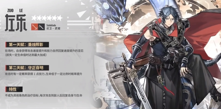 很多朋友问明日方舟左乐是谁,左乐其实是游戏中一个新出的六星角色,本身需要从限定卡池中抽取,一些朋友可能还不清楚他的天赋技能,所以下面小编就一起来解读一下,他本身是一个伤害很炸裂的近卫武者,有想法入手的话一定要来了解一下,这能让你提前获悉他的技能。