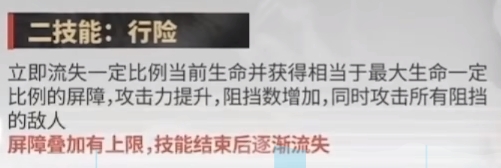 二技能则可以扣除自己一部分血量并获得一个护盾,同时还能提升攻击和阻挡数,并且之后会攻击所有阻挡的敌人!