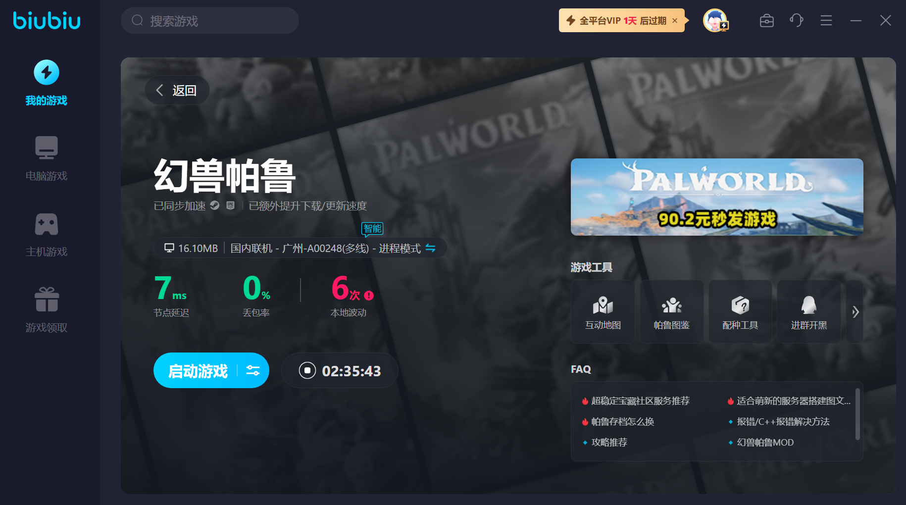 相信不少幻兽帕鲁的玩家们都遇到过联机不稳定及频繁卡顿的状况,这基本就是我们在连接幻兽帕鲁的个人服务器的网络连接出了问题。这里面小编推荐喜欢幻兽帕鲁联机的玩家们试试biubiu,现在biubiu的活动力度非常大,PC上面新注册就能直接领24小时的加速时长,再输入“biubiu001”,还能给到我们三天的一个加速礼包,这共计96小时的加速免费体验非常给力,直接覆盖我们的春节档,大家快来试试吧!