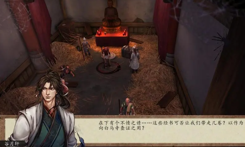 到达白马寺之后,小伙伴们通过与寺庙中的npc对话,会发现这几卷经书确实是出自白马寺的,并且归方丈所有,但此时方丈正在凌云寺中交流佛学。于是玩家们又前往凌云寺,却在小道上遇到了灵乡方丈。剧情进行到一半时,玩家们会被突然冒出来的小怪围攻。此时小伙伴们可以选择先清理下方的小怪,再清理上方的小怪。在战斗结束之后会发现小怪们趁乱将剩余的经书全部带走了。