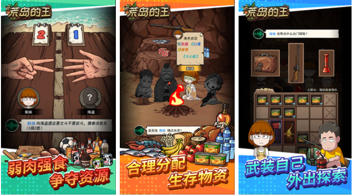 荒岛的王是款将文字挂机和荒岛求生玩法相融合的游戏,搞笑魔性的剧情与各种随机事件令人流连忘返,丰富的生存任务和窘迫的生存状况让游戏略带一丝真实性,玩家需要合理分配物资或者打造各种道具,弱肉强食的游戏法则和拟真的荒岛环境令人沉迷其中,想在荒岛中称王的话就需要建造自己的王国哦!