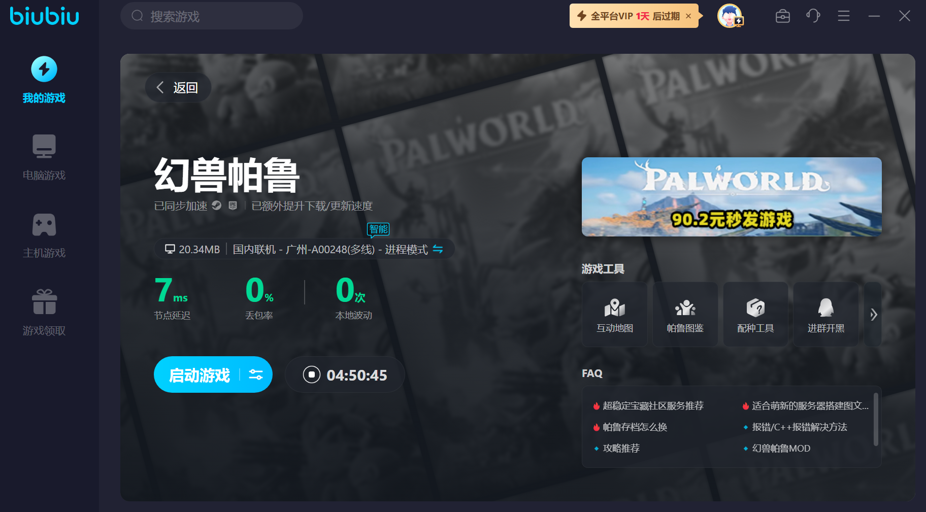无论是帕鲁黑心工厂也好,还是与好友共同打造帕鲁农场,都需要我们在联机模式里有一个稳定的网络环境。这里大家可以试试很多帕鲁玩家们都很喜欢用的加速器——biubiu,新人的话在pc端注册还能直接领24小时的免费加速时间,输入兑换码“biubiu001”还能再拿3天的免费加速包,这一共长达96小时的免费加速时间,大家快用biubiu来体验幻兽帕鲁吧!