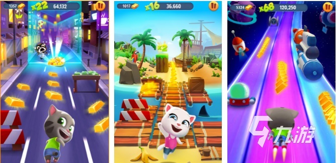 汤姆猫跑酷本是一款以汤姆猫为主角的3D卡通跑酷游戏,是由《会说话的汤姆猫》的原班人马团队制作而成,游戏的场景是拟定在不同的背景当中,外形Q萌可爱的宠物们在井然有序的城市、秀美壮丽的山林、银装素裹的雪地和广袤平摊的沙滩等场景中奔跑,而在不同的场景当中画风也会随之跟着变化,这样的画面感无疑能使玩家感受到舒适放松,获得极佳的体验感。同时这款汤姆猫跑酷游戏的玩法与其他跑酷游戏相比独树一帜,玩家将操控汤姆猫进行跑酷前进,在奔跑的过程中除了收集地图中常见的金币、躲避障碍物等基础操作外,还需要手脑并用,玩家能在各种不同的场景环境当中收集额外的奖励,赢取与浣熊帮对抗的胜利,以此来更好的感受游戏之中极其趣味的可玩性。另外,汤姆猫跑酷中为了提高玩家的乐趣,游戏中还衍生了多种玩法以及各种道具,致力于带给玩家更好的体验感。