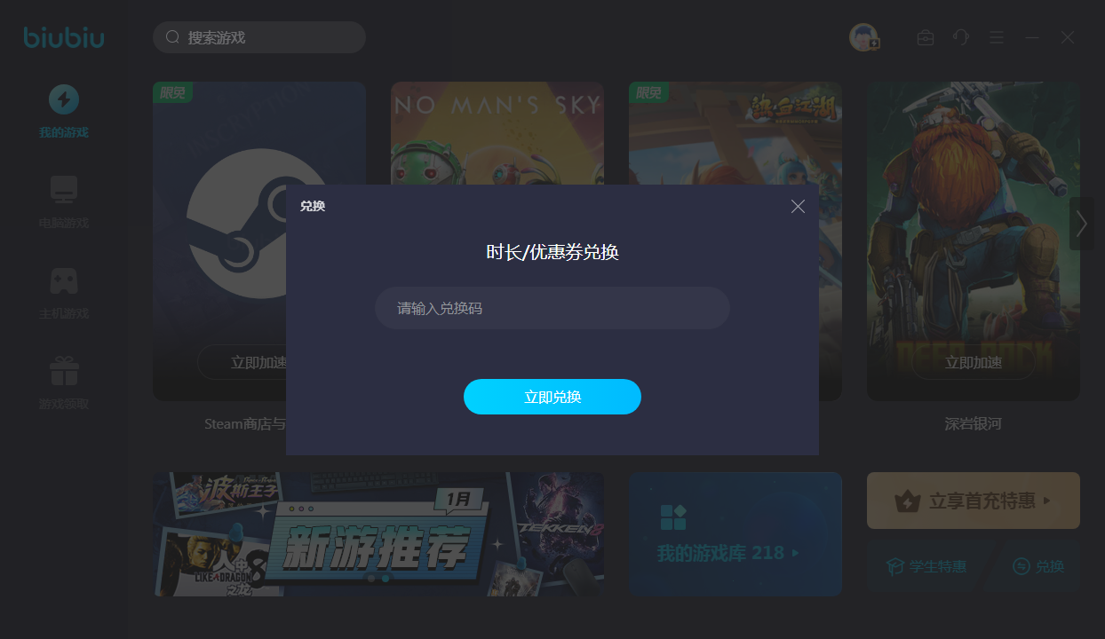 在biubiu的游戏库中有市场上绝大多数游戏,大家只要搜索到就能享受同样效果,如果遇到问题也可以随时向客服反映,在工作时间内会及时向大家进行反馈,所以不用担心出现各种问题。现在加入还有很多免费游戏时间提供给大家,新注册的账号直接获得24小时游戏加速时间,所有账号都可以直接在兑换功能中输入【biubiu不卡顿】,就能免费获得三天游戏加速时间。另外软件还有很多免费功能提供给大家,包括游戏攻略、资讯以及社区话题讨论等,这些都有助于大家轻松了解游戏各种玩法以及最新消息。其中有很多都是来自海外服务器的测试情况,是其他渠道所难以获取的。