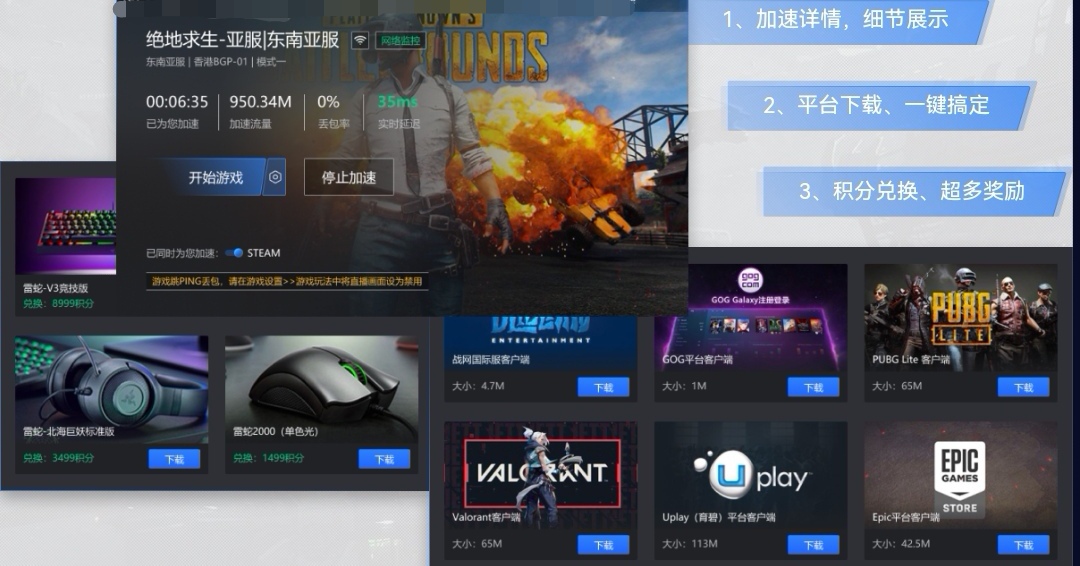 以先进的技术为主的加速器给用户提供稳定的网络环境,支持多种电脑网络游戏,高质量的加速器没有任何的套路,不需要复杂节点选择完全可以智能操作,保证网络线路的高效稳定,在各种枪战射击类型游戏当中为大家消灭敌人提供更好的服务,自动监控网络为大家保驾护航。