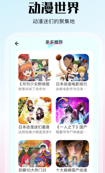 以上这些就是关于动漫软件的相关内容,此类型app当中所包含的内容极其丰富,除了有动漫视频之外,还有详细的图文解说以及全彩漫画,可以结合个人实际需求,选择适合的类型。