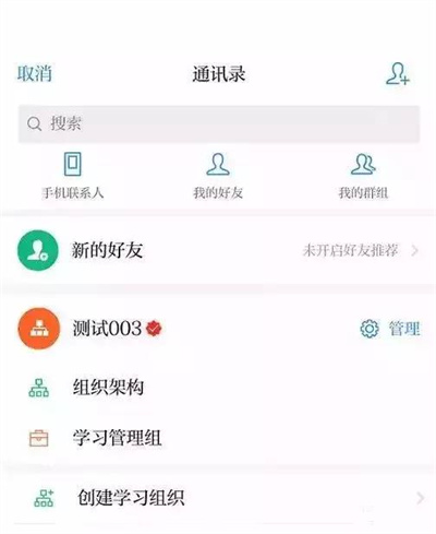 3.然后选择学习组织管理,在页面中点击学习组织通讯录;