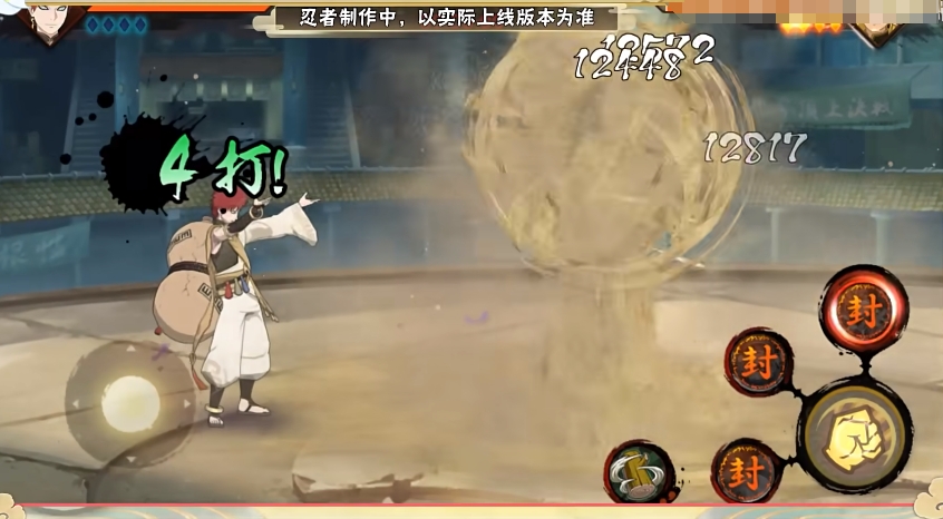 新春我爱罗的普攻技与其他角色有显著不同,虽然普攻段数总共只有四段,但在四段之后却能够形成一个沙球将敌人包裹并击飞到天上,因此一轮普攻下来的连击次数是非常多的,此外,第二三段中间配合摇杆的左方向键还能打出隐藏普攻,以此实现后续的多段位移。