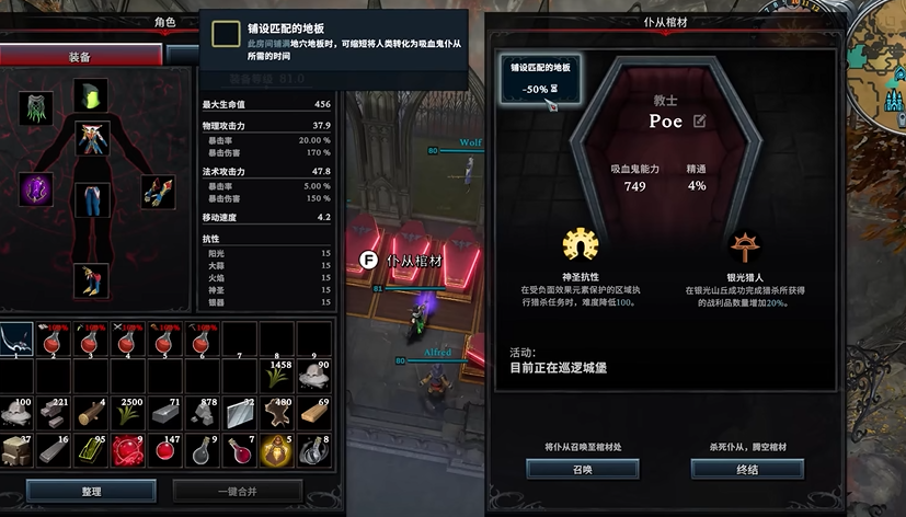 然后大家需要将已经被主宰技能转化的人类带回到家中的仆从棺材当中。在路程当中玩家不可以使用任何道具,并且人类会在路上遭受到无数敌对角色的攻击。大家要保护好需要转化的人类角色,让他不要被敌人打成重伤,接着送到城堡的仆从棺材当中,就可以转化成功了。