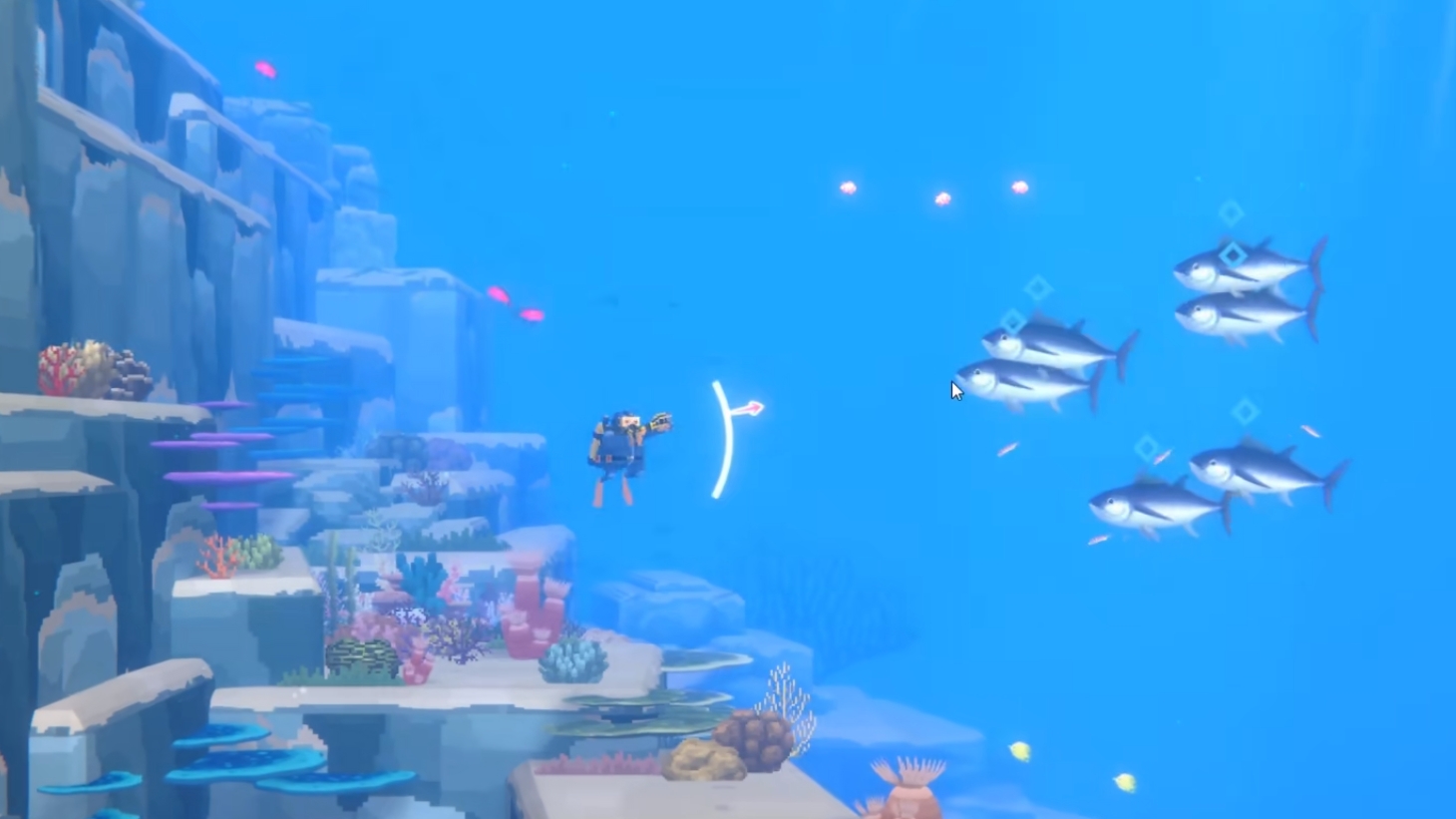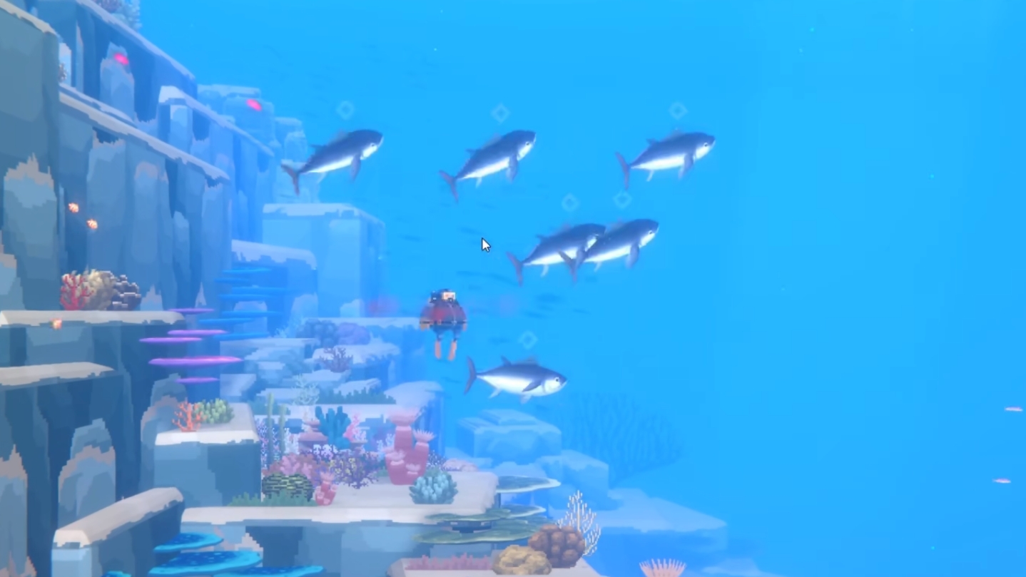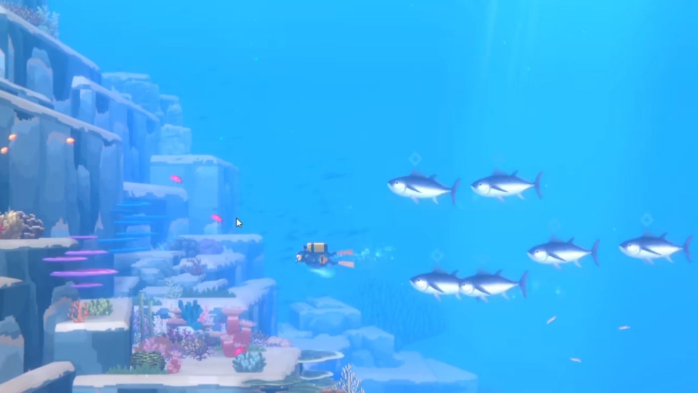 首先,玩家在用网枪捕捉金枪鱼时,先要了解金枪鱼的习性。金枪鱼分为蓝鳍和黄鳍,在蓝洞附近就能遇到,在大多数情况下都以鱼群的方式出现,每群大概3至5条,少数情况会出现六条。它们游动时会以极快地速度掠过玩家身边,若玩家直接撞上会损失一定的血量。