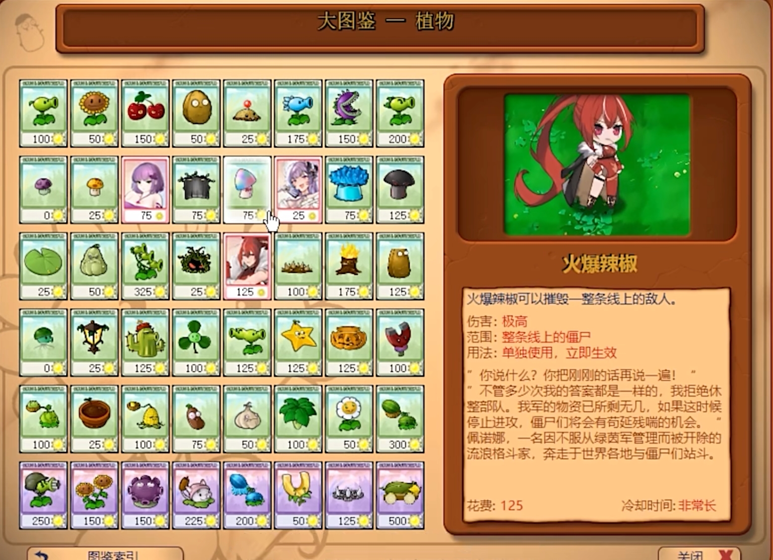 而在具体的玩法上,游戏也十分容易上手,玩家可先种植能生产阳光的植物,等阳光积累到足够数额后,再花费阳光种植各类防御植物,以此来完成抵御僵尸进攻的重任。而且游戏还保留了图鉴功能,玩家可在里面查看自己所收集的植物,以及它们的模型和特性,同时还能查看有哪些植物已经进行了娘化改版。