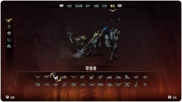 第三个非常重要的机器是草食者,它的主要特点就是在受到惊吓后常常会处于快速逃跑状态,但是在逃走的过程当中仍然可以用他的尖角发出刺穿攻击,其覆盖指令为SIGMA,这一指令位于18号大干锅内,目前它的主要弱点有两个,一个是火焰燃料罐,一个是转子叶片,玩家对这两大弱点发起进攻都可以完成相应的摧毁模式,其主要掉落道具其实和昂步者较为接近,比较罕见的掉落道具是小型的机器核心以及草食者之心。