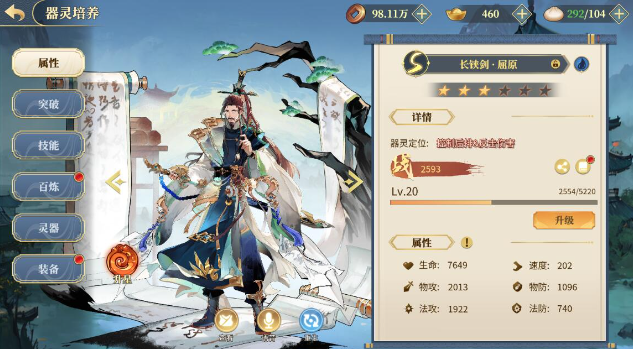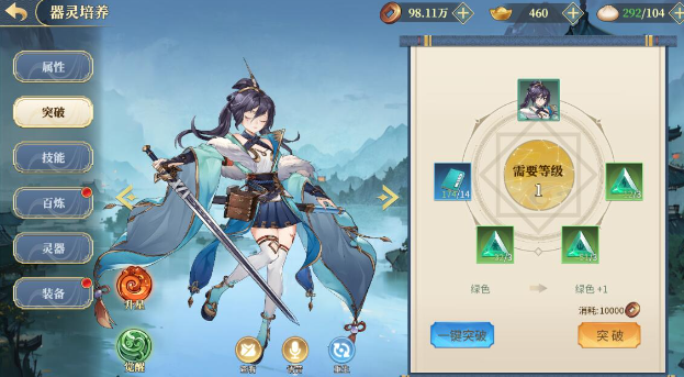 进入到界面之后可以直接根据稀有度,然后开始培养,可以点击右侧的升级来有效提升等级。在升级完毕之后还可以进行等级突破,只是在突破过程中需要耗费对应的铜币。