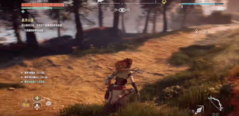 荒野教诲:这是游戏的第二个任务,也是狩猎教学任务,玩家将扮演12岁的亚萝伊,跟随罗斯学习如何狩猎机械兽,以及如何使用弓箭和陷阱。玩家需要学习如何利用Focus分析机械兽的弱点和行为模式,以及如何利用草丛和岩石避免被发现,最后完成狩猎任务,获得机械兽的零件和资源。