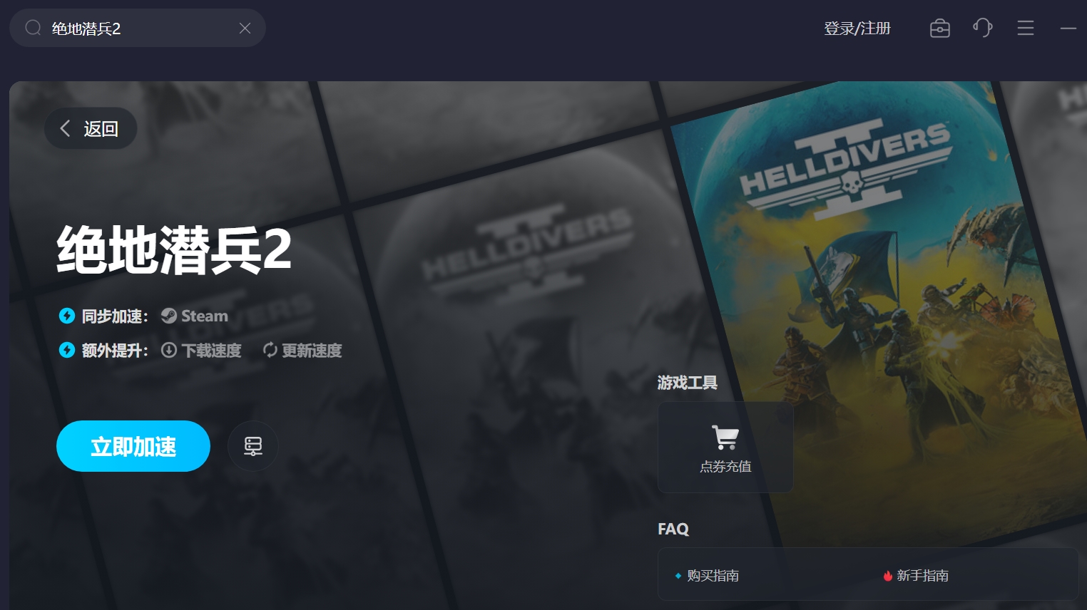 绝地潜兵2中蕴含丰富的战斗玩法可以让大家可以享受多种超科技战斗,角色的流畅动作和上面刺激的对战也让各位喜欢战斗的玩家心动不已,但是直接下载的话不仅中间容易出现问题,后期体验也会容易卡顿,所以建议大家下载一个,它提供的下载通道会更加快捷高效,后期还可以实现网络加速。
